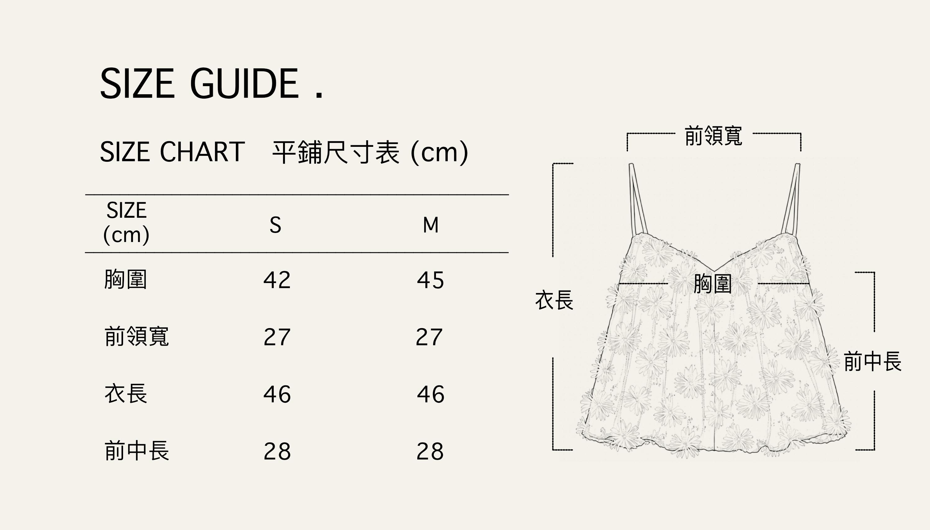 *每件商品皆附尺寸表,為手工量測,可能 ±2 公分誤差屬正常範圍。