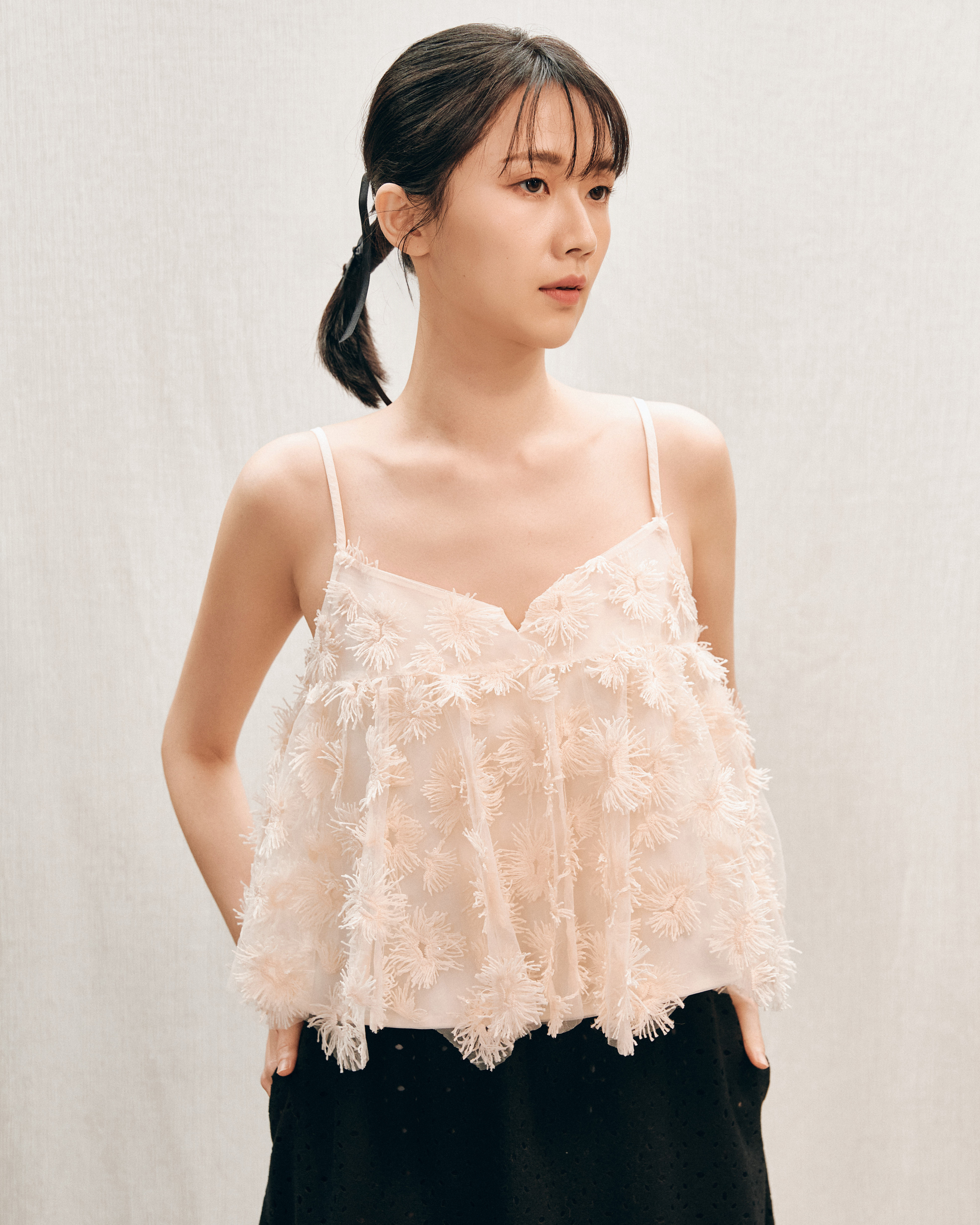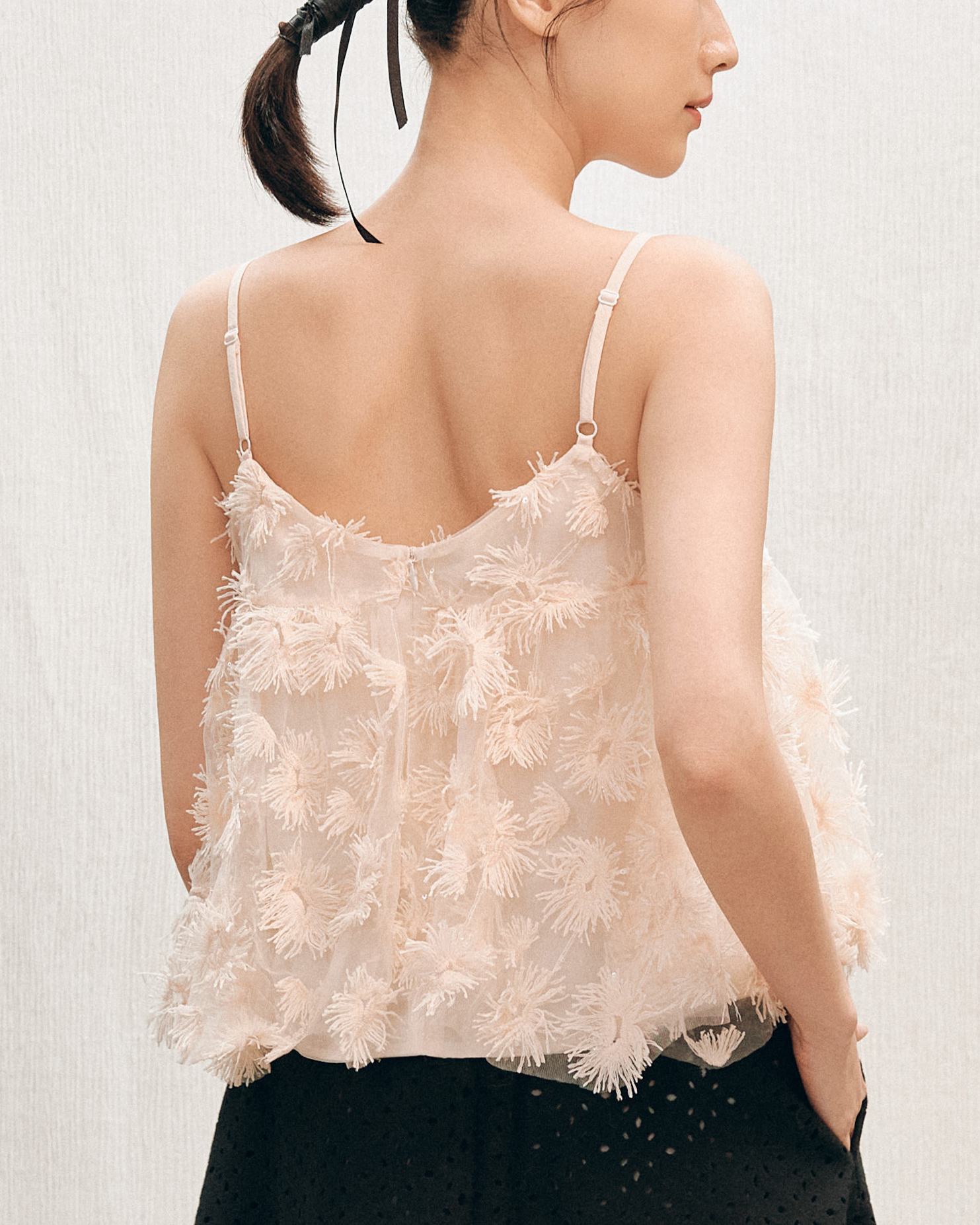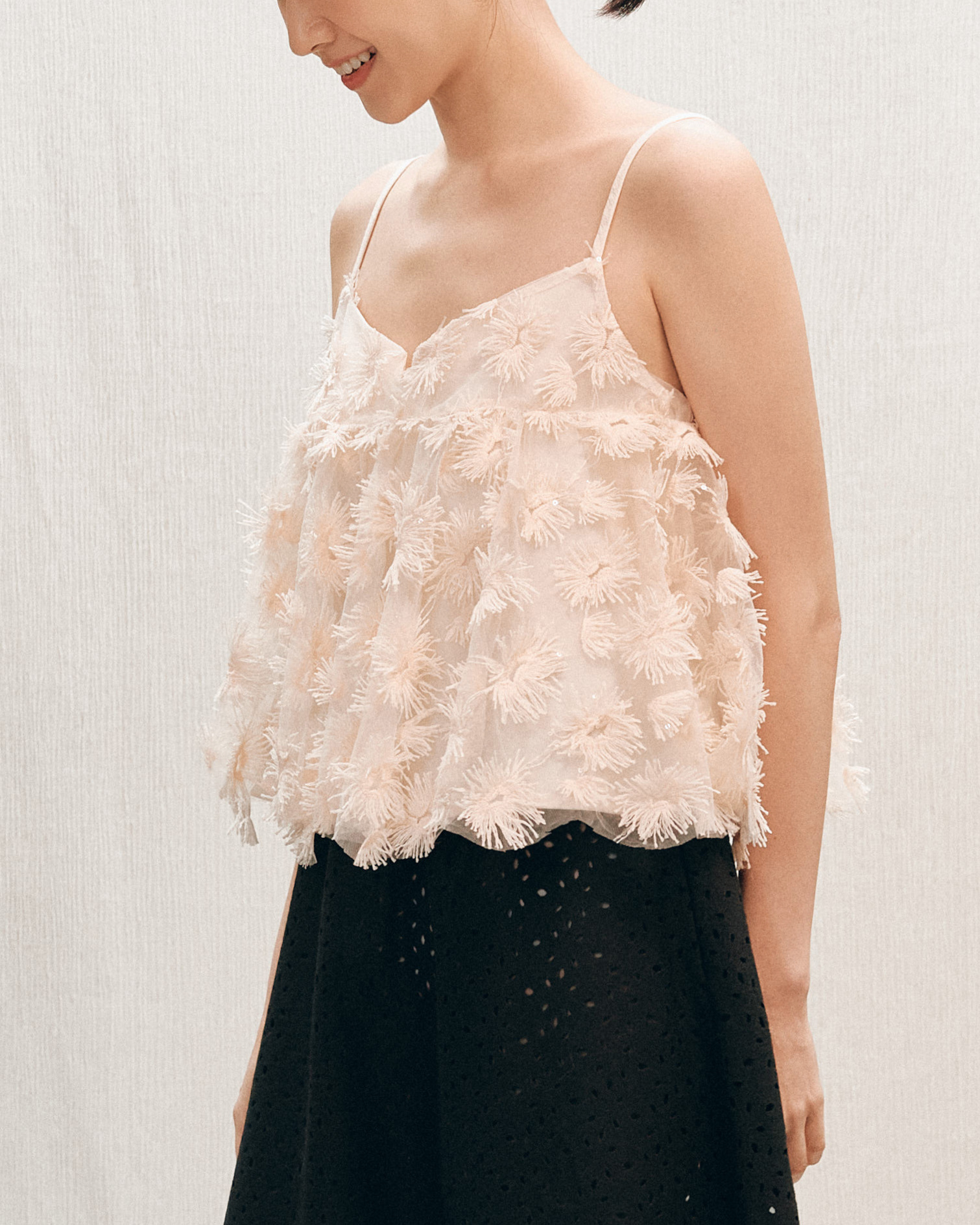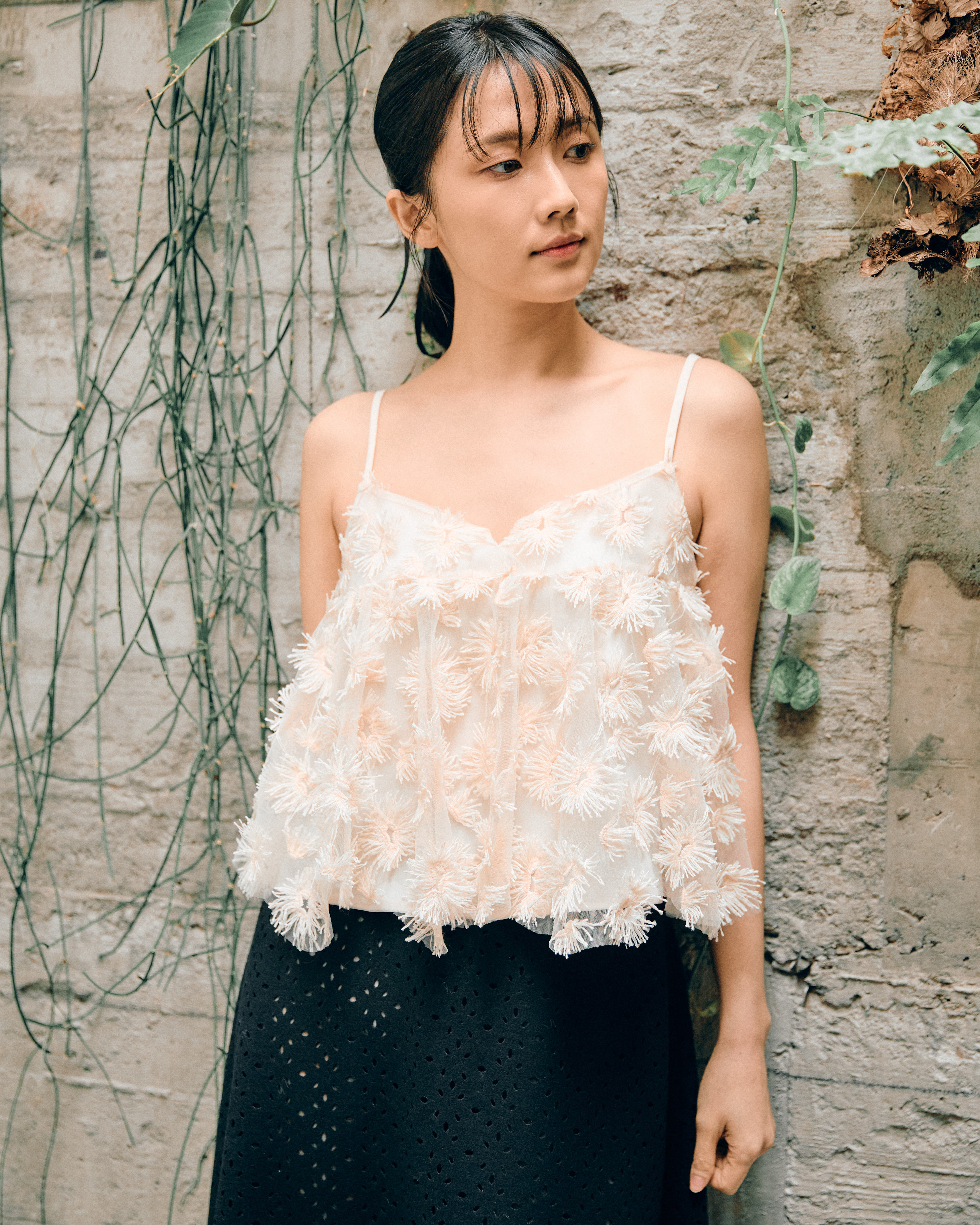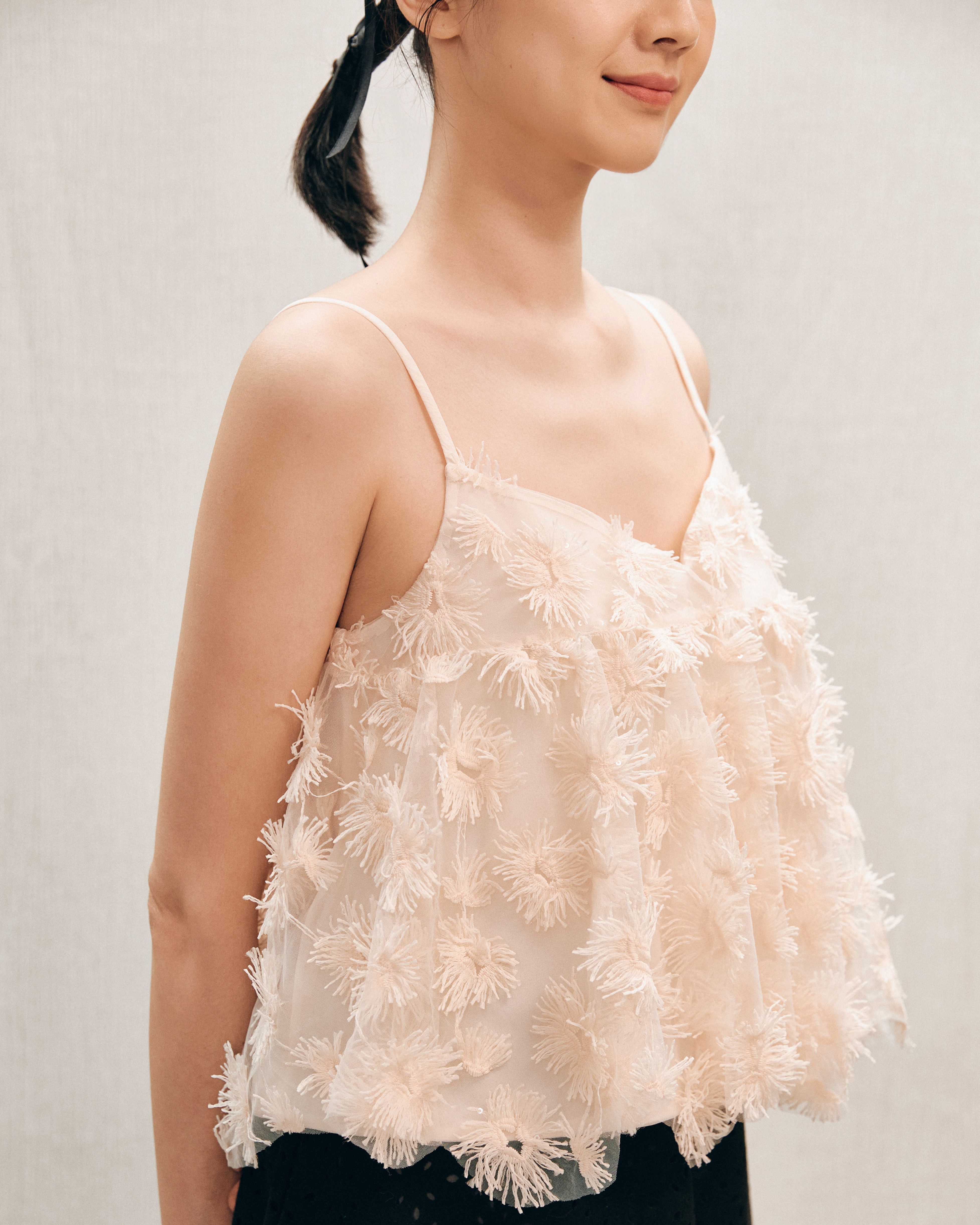 溫柔的粉膚色基底托起滿佈的立體花絮,