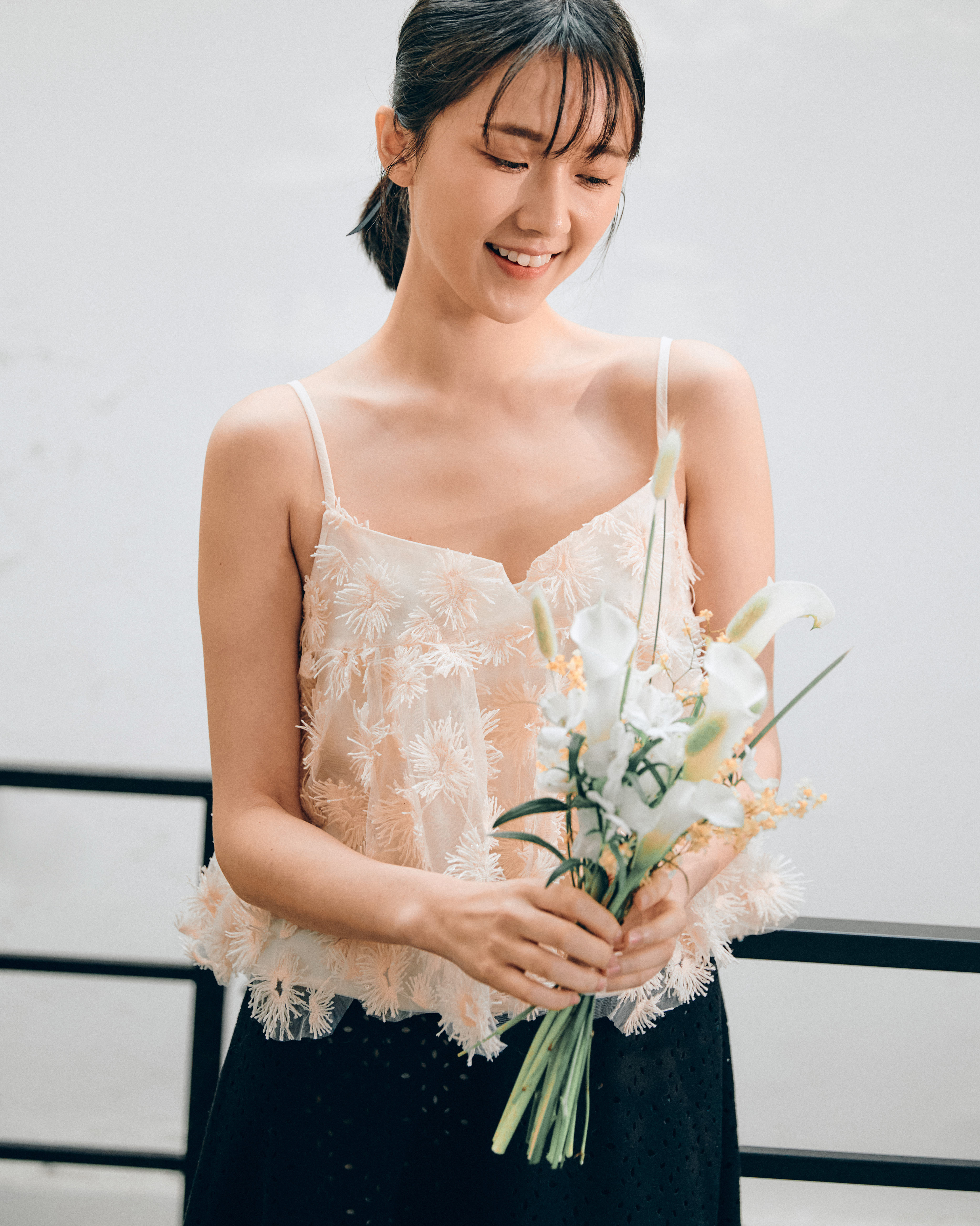 裸粉立體花瓣傘擺背心