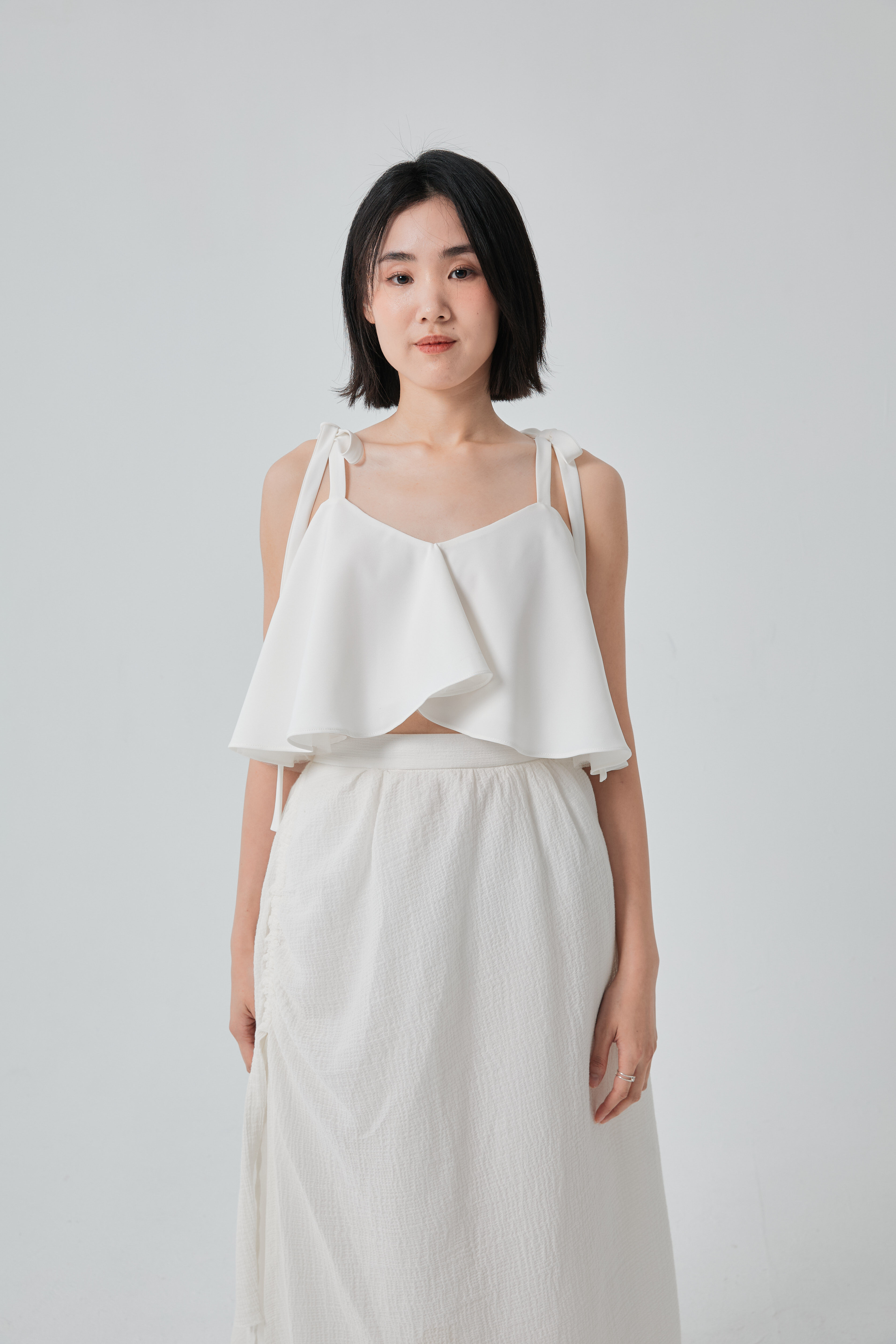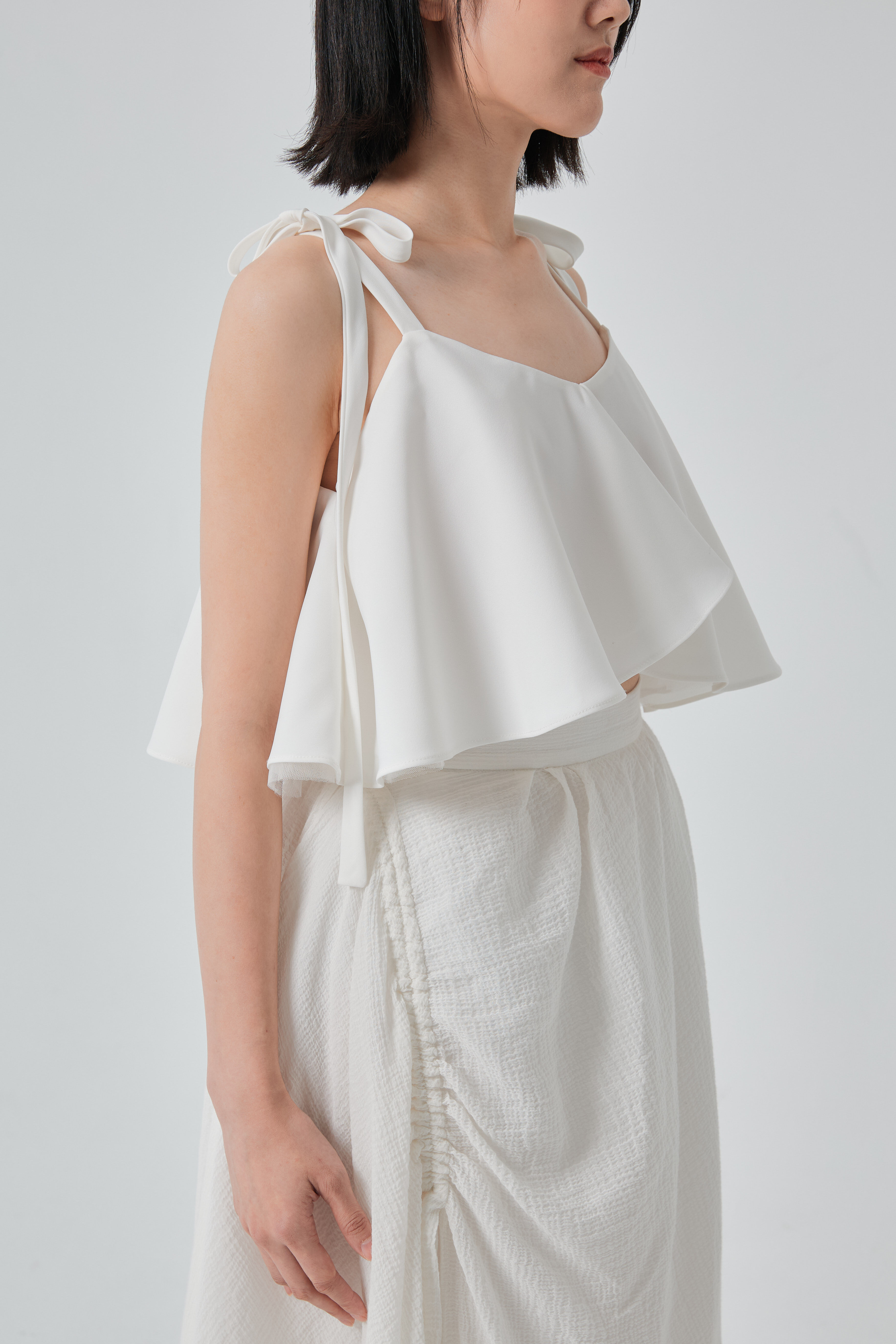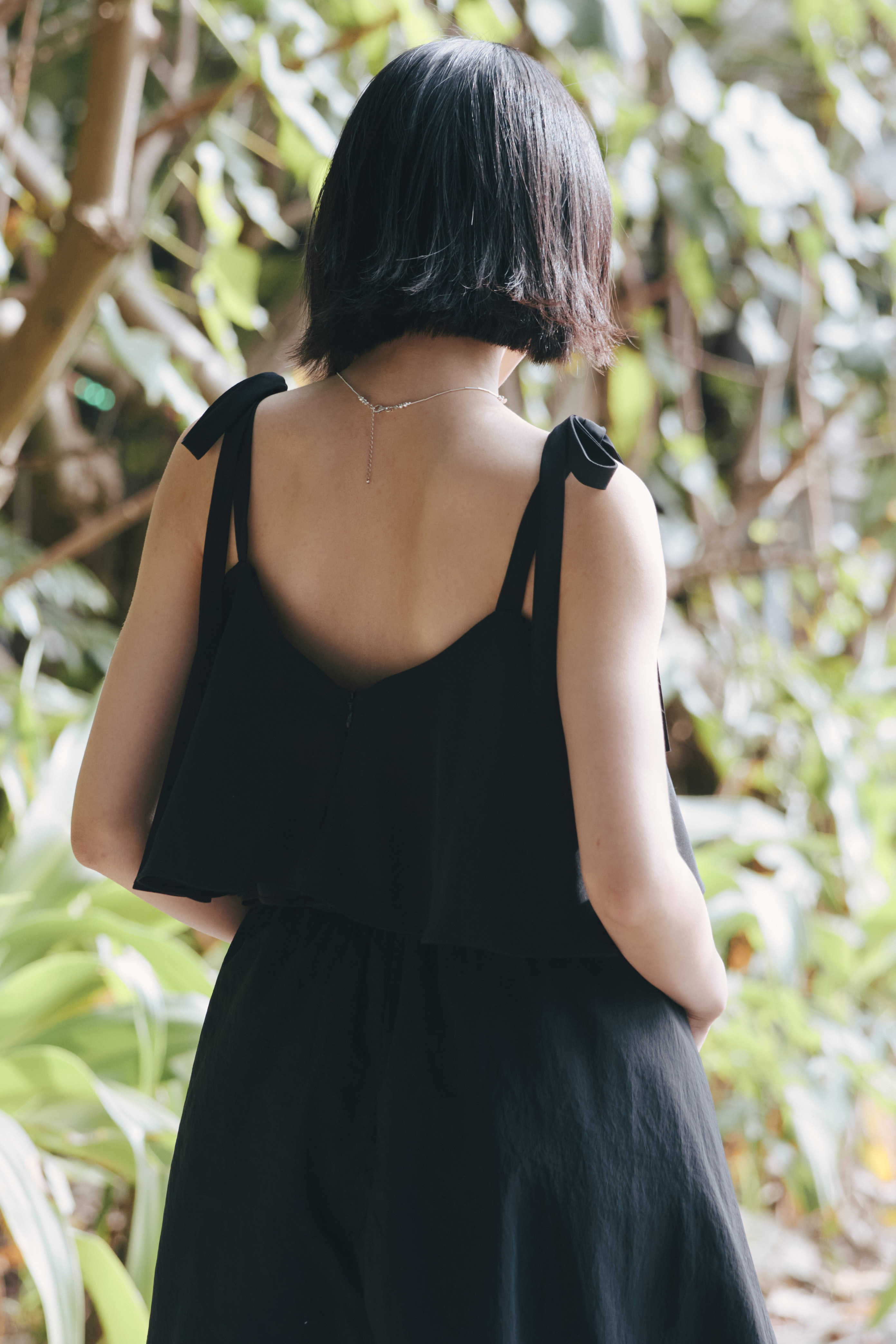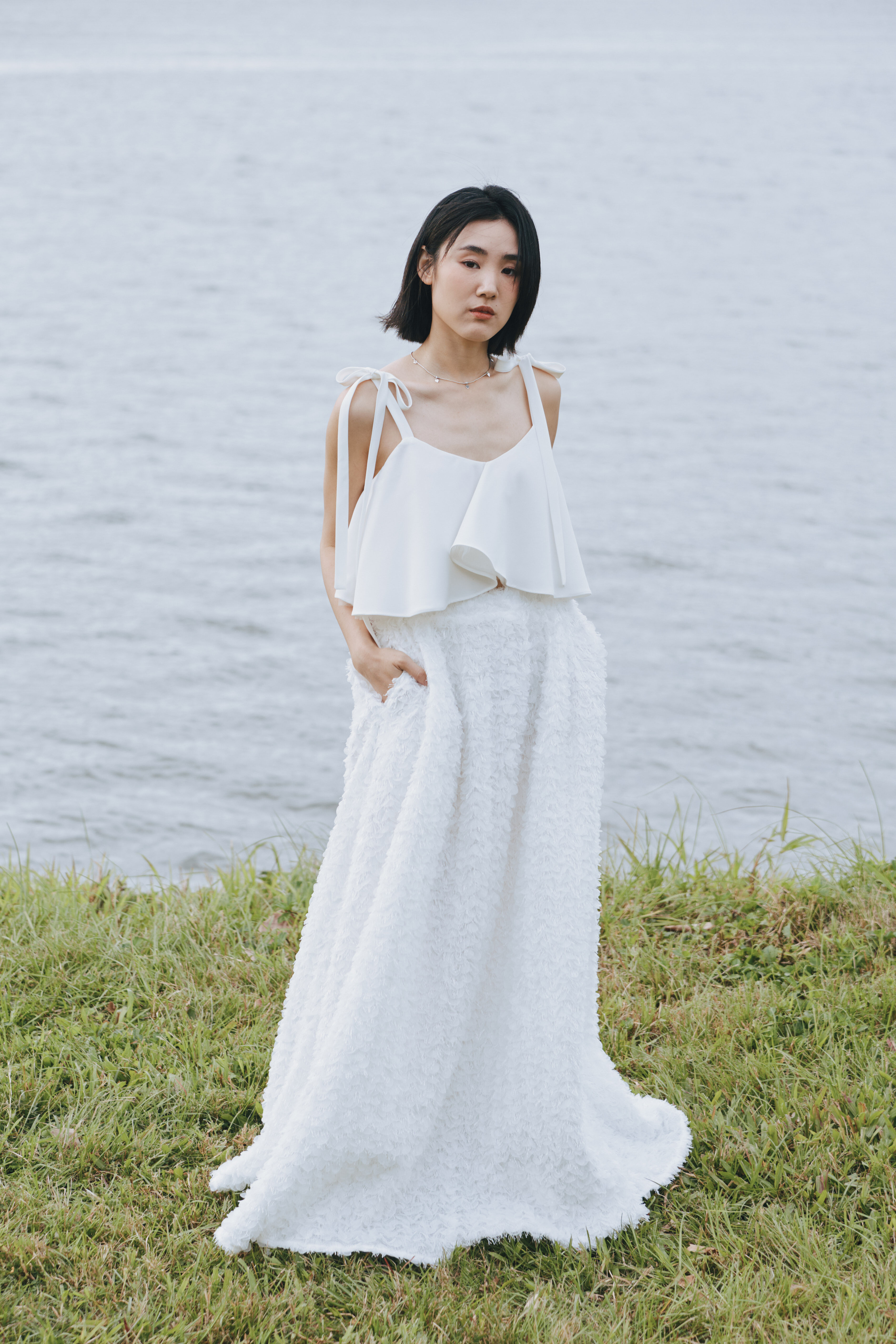 細緻蝴蝶結停在肩上,為整體添上一抹不經意的浪漫。